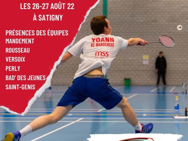 Du 8 au 12 août et du 15 au 19 août, le BC Genève organise deux camps de badminton à la Queue d’Arve. Avec Alan Tejerina, Arnaud Baumgart, Jonas Garazi et …