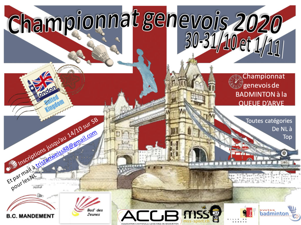 Après mouts reports, il arrive enfin ! Organisé conjointement par le BC Mandement et le Bad’ des Jeunes, le Championnat genevois 2020 aura lieu du vendredi 30 octobre au dimanche 1er novembre, au Centre sportif de la Queue d’Arve.
