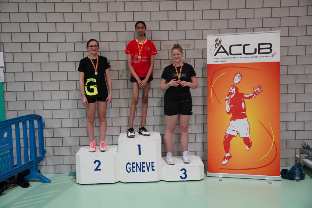 En U15 filles, Ria Sriram, également du BC Mandement, vainc une nouvelle fois devant mesdemoiselles Aline Pernegger (BC Vésenaz) et Solène Gauchat (BC Rousseau).