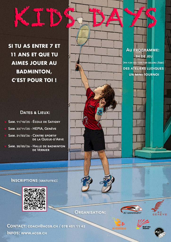 En collaboration avec les clubs genevois, nous vous invitons à une nouvelle édition pleine d’énergie, de rires et de badminton pour les jeunes passionnés !