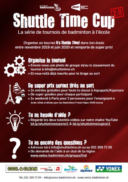 Fais découvrir le badminton dans ton école, organise un tournoi avec l’aide de tes enseignant(e)s d’éducation physique et remporte de super prix. Ca commence maintenant et c’est jusqu’à la fin de l’année scolaire, en juin 2020.